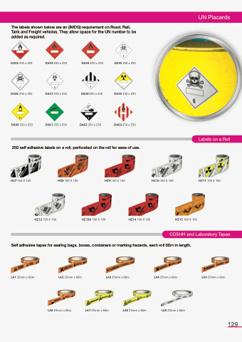 The labels shown below are an (IMDG) requirement on Road, Rail, Tank and Freight vehicles. They allow space for the UN number to be added as required.