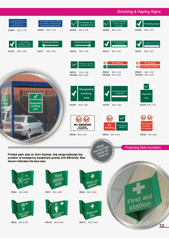 Printed each side on 3mm foamex, this range indicates the position of emergency equipment quickly and efficiently. Size shown indicates the face size.