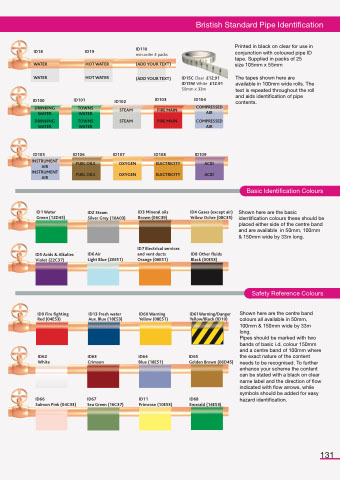 Shown here are the basic identification colours these should be placed either side of the centre band and are available in 50mm, 100mm & 150mm wide by 33m long.