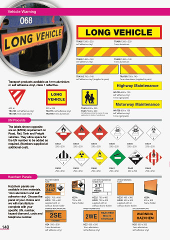 Transport products available as 1mm aluminium or self adhesive vinyl, class 1 reflective.