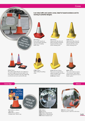 Low index traffic and caution cones, ideal for hazard avoidance and for warning of potential dangers.