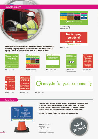 WRAP (Waste and Resource Action Program) signs are designed to encourage recycling and act as an aid to a uniformed approach to signage. The UK hopes to recycle 50% of its waste by 2020.