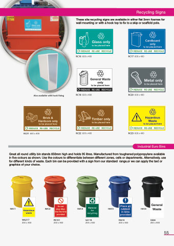 These site recycling signs are available in either flat 3mm foamex for wall mounting or with a hook top to fix to a skip or scaffold pole.