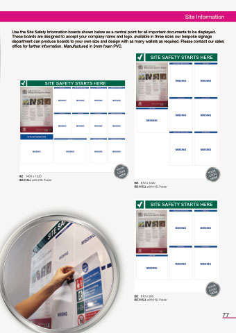 Use the Site Safety Information boards shown below as a central point for all important documents to be displayed. These boards are designed to accept your company name and logo, available in three sizes our bespoke signage department can produce boards to your own size and design with as many wallets as required. Please contact our sales office for further information. Manufactured in 3mm foam PVC.