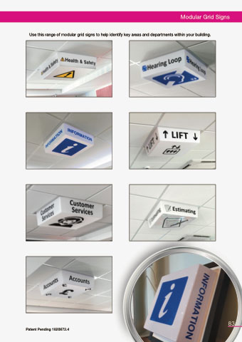 Modular Grid Signs Use this range of modular grid signs to help identify key areas and departments within your building. 83 Patent Pending 1620672.4